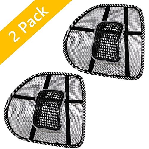 This lumbar cushion made of elastic, steel wire frame and nylon nets, help massage your back, much less pressures while driving or working. Features: Great relax massage support for seat in the car, office or home. The beads help massage your back, much less pressures while driving or working. Mesh material allows air circulation to keep you cool. Attaches by elastic, applicable for any seats with back. Specifications: Color: Black material: Elastic, steel wire frame and nylon nets size: Approx. 42*36cm/16.5*14.2in weight: Approx. 153g/5.4oz package includes: 2.
